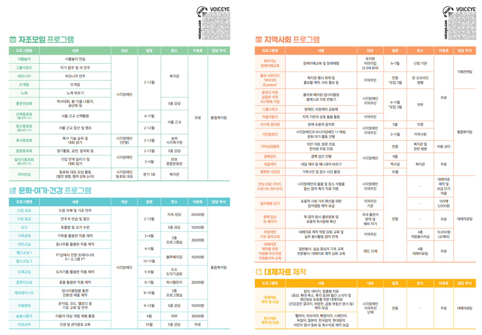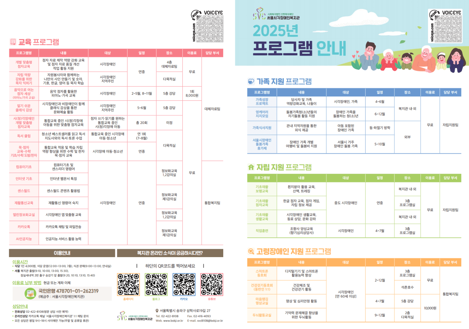 서울시각장애인복지관의 2025년 프로그램 안내입니다.
