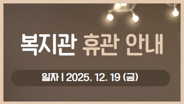 서울시각장애인복지관은 종무식 진행으로 12월 19일(금) 휴관합니다.