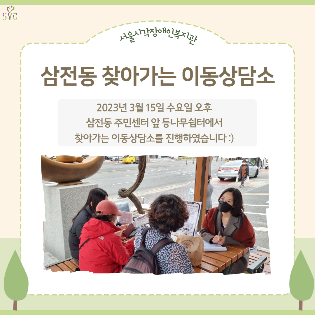 저희 서울시각장애인복지관은 23년 3월 15일 수요일