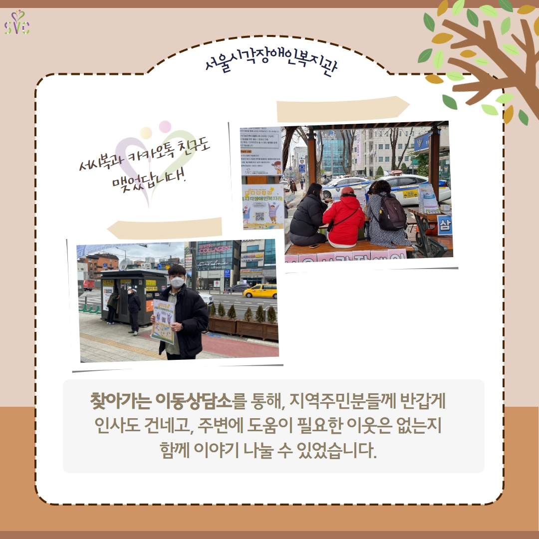 다시 한번 감사의 인사 드립니다. 앞으로도 자주 찾아뵙는 서울시각장애인복지관이 되겠습니다.