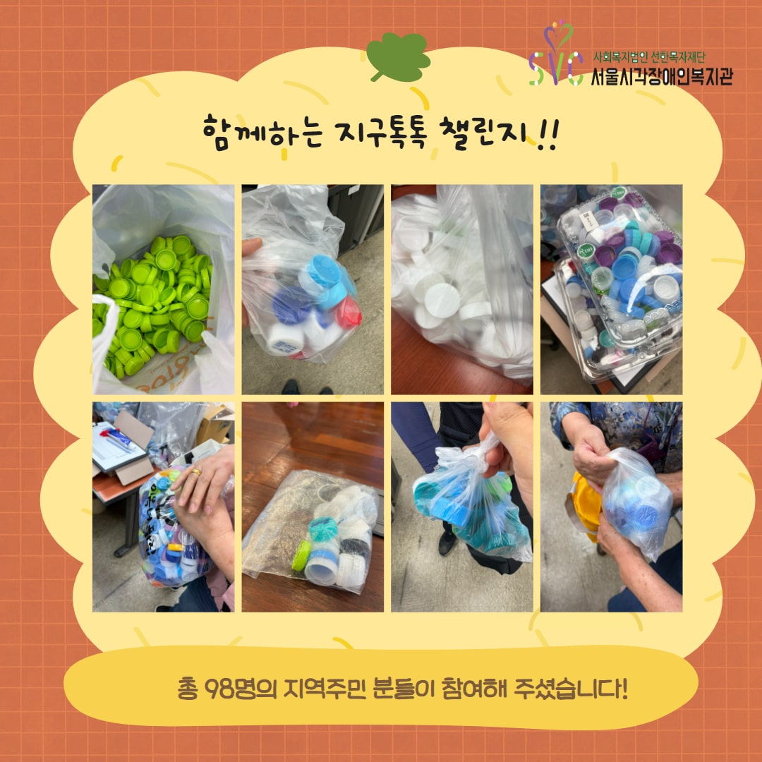 총 98명의 지역주민께서 ‘페트병 뚜껑 모으기 챌린지’에 함께해 주셨습니다.