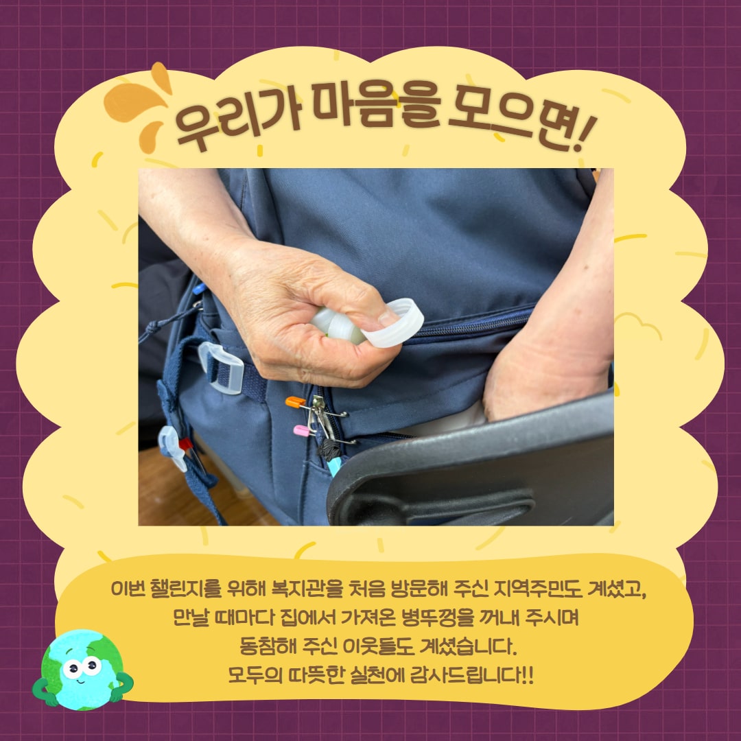 이렇게 이웃 한 분, 한 분의 작은 실천이 모여 생각보다 훨씬 많은 플라스틱 병뚜껑을 수거할 수 있었습니다.