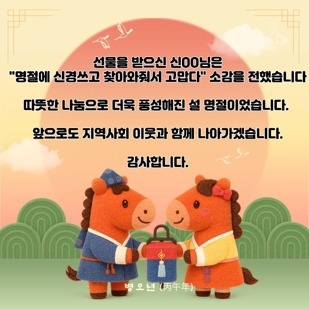 따뜻한 나눔으로 더욱 풍성해진 설 명절이었습니다.