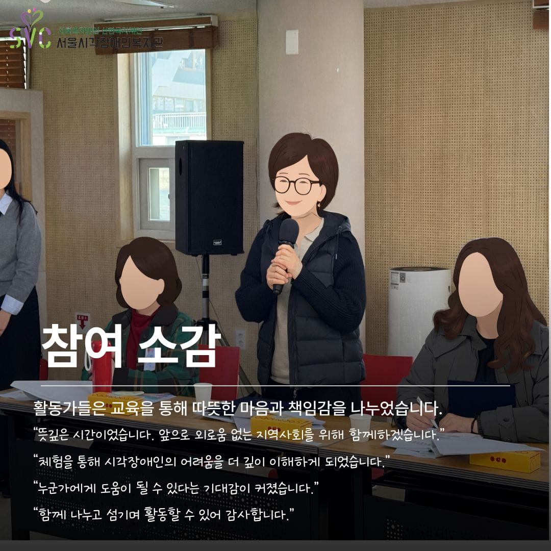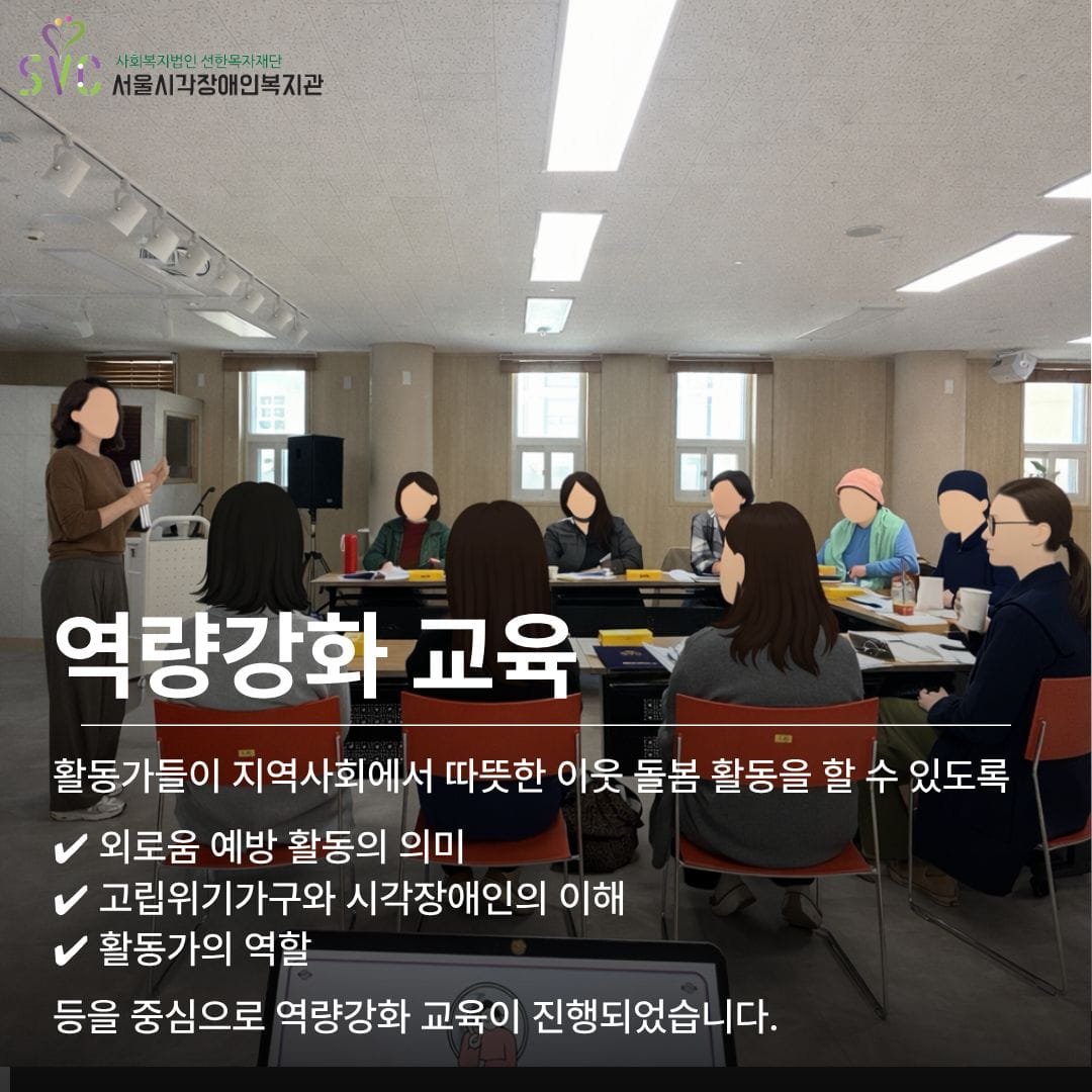서울시각장애인복지관에서는 지역사회 고립을 예방하고 이웃 돌봄 문화를 확산하기 위해