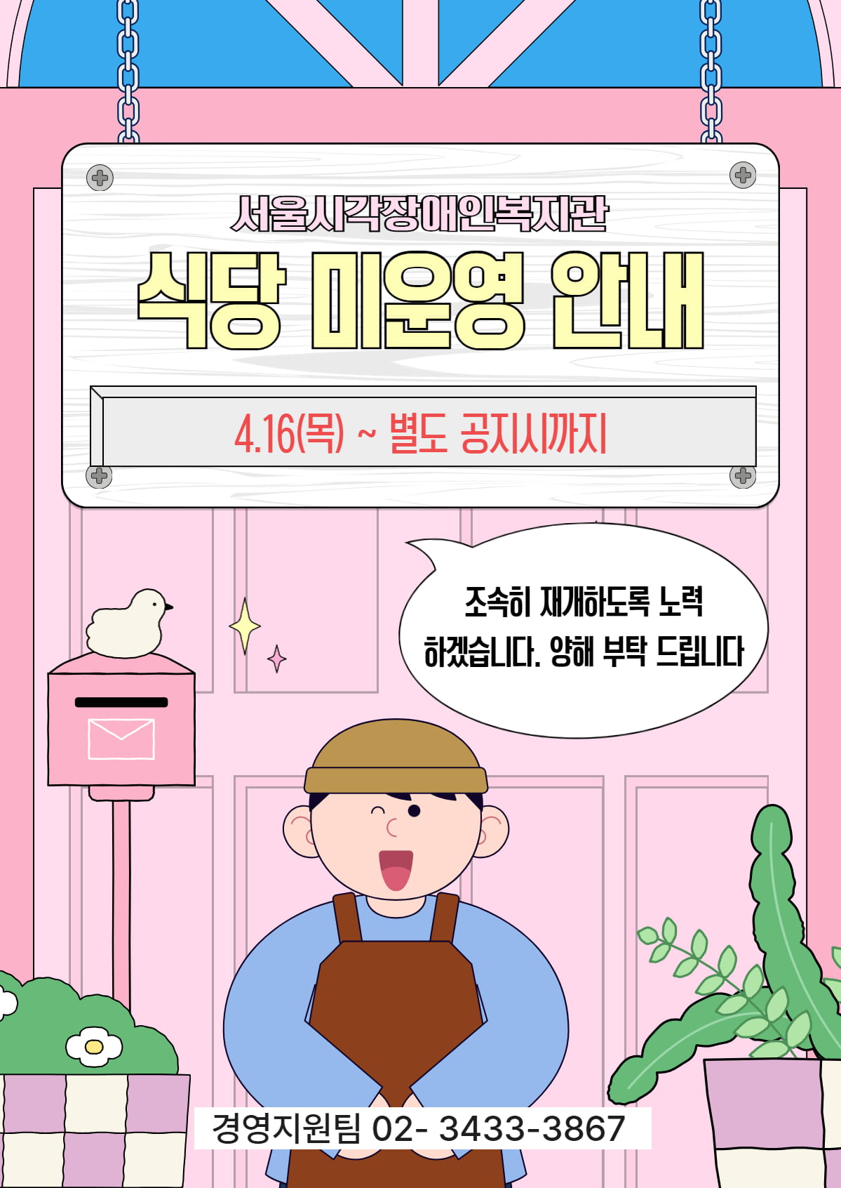 복지관 식당 미운영 안내 (4.16~) *별도 공지시까지