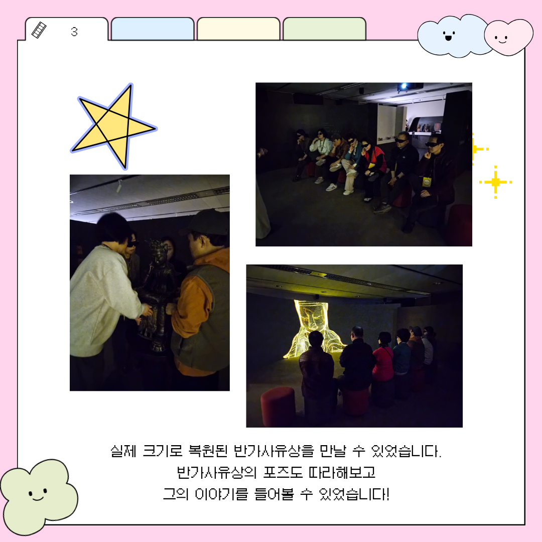 우리 문화재 반가사유상에 대해 알아보고 다양한 감각을 통해 전시를 관람함으로써 유익하면서도 힐링하는 시간이 되었습니다.