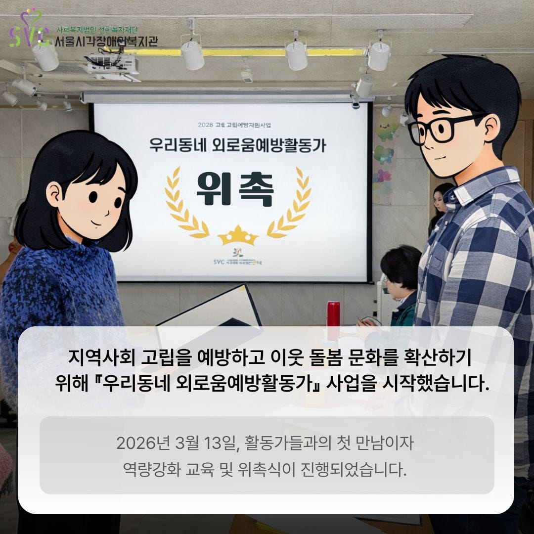 서울시각장애인복지관에서는 지역사회 고립을 예방하고 이웃 돌봄 문화를 확산하기 위해