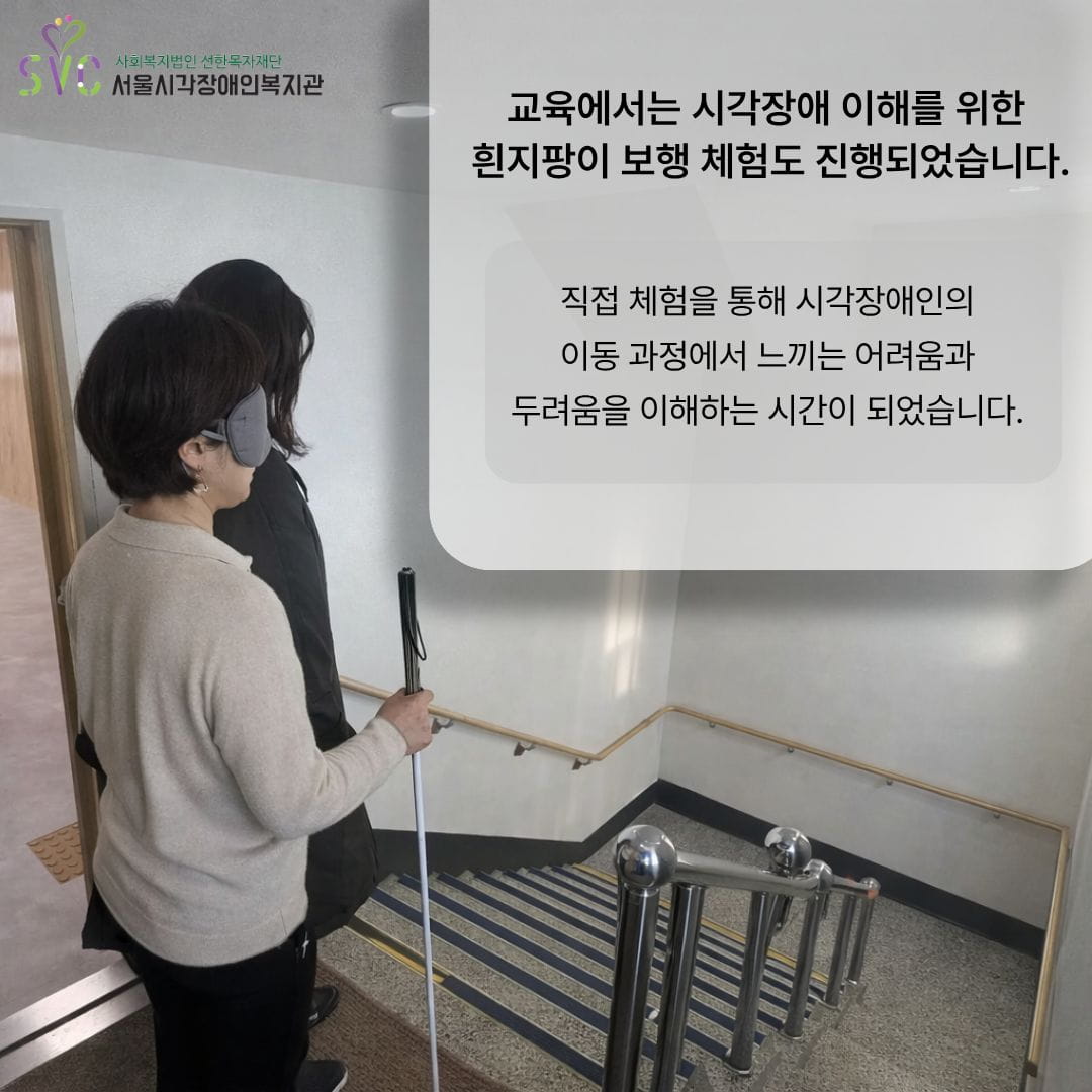 특히 시각장애 이해를 위한 흰지팡이 보행 체험은 활동가들에게 깊은 인상을 남겼습니다.